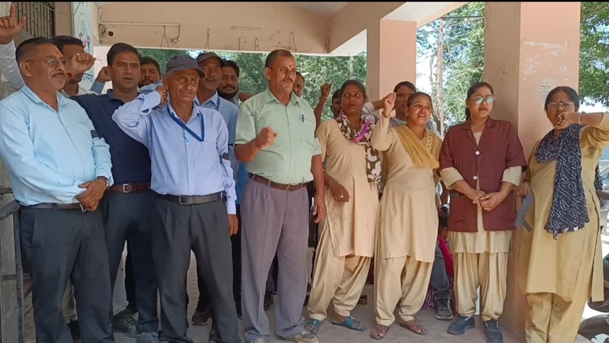 मेडिकल कॉलेज के अधीन बेस अस्पताल में कार्यरत नॉन टीचिंग कर्मचारियों को वेतन के लाले पड़े हैं. इसी को लेकर कर्मचारियों ने शुक्रवार को हाथों में काला फीता बांध कर विरोध जताया. कर्मचारियों ने अपनी मांगों के समर्थन जमकर नारेबाजी की.